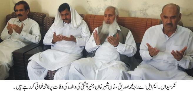 راجہ محمد صدیق نے دوبیرن کلاں جا کر نوجوان صحافی محمد منیر چشتی سے ملاقا ت کی اور ان کی والدہ کی وفات پر دلی رنج و غم کا اظہار