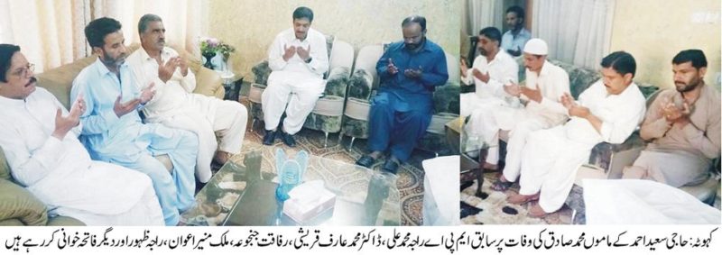 حاجی سعید احمد کے ماموں محمد صادق کی وفات پر اظہار تعزیت