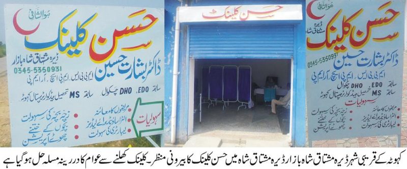 ڈیرہ مشتاق شاہ بازار ڈیرہ مشتاق شاہ میں حسن کلینک کا قیام