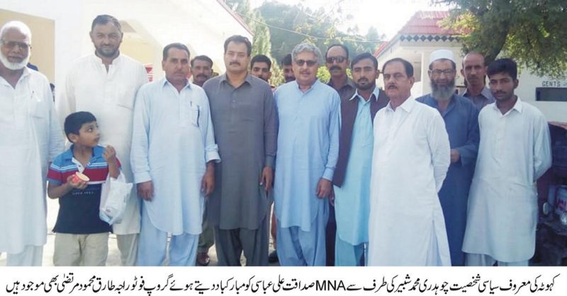 معروف سیاسی ،سماجی اور کاروباری شخصیت چوہدری محمد شبیر کی طرف سے صداقت علی عباسی کو مبارکباد