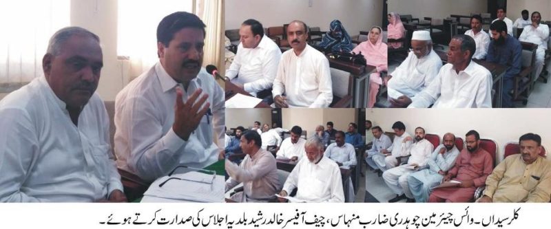 بلدیہ کلر سیداں کا اجلاس زیر صدارت چوہدری ضیارب منہاس منعقد ہوا جس میں چیف آفیسر خالد رشید خان اور دیگر نے بھی شرکت کی اجلاس میں گزشتہ اجلاس کی کاروائی کی توثیق کی گئی ۔اجلاس میں ایڈورٹائزنگ ٹیکس اور موٹر سائیکل رکشوں پر ٹیکس کی بھی منظوری دی گئی ،اڈا فیس بحال کرنے کا بھی فیصلہ کیا گیا ۔اجلاس شروع ہوا تو حاجی اخلاق حسین اور صوبیدار ظفر اقبال بیگ نے کہا کہ گزشتہ اجلاس میں رکشہ فیس کی منظوری ہی نہیں دی گئی تھی اجلاس کی کاروائی کی کاپی ارکان بلدیہ کو مہیا نہیں کی جاتی یہ طریقہ کار درست نہیں دونوں ایک ساتھ بولنے لگے جس پر صوبیدار ظفر اقبال احتجاجاً اجلاس سے واک آؤٹ کر گئے جنہیں بعد ازاں شیخ حسن ریاض اور عابد زاہدی منا کر واپس لائے ۔سی او خالد رشید نے کہا کہ رکشہ والے خودٹیکس دینا چاہتے ہیں اور انہیں اس بات پر کوئی اعتراض نہیں ہے اجلاس میں سلاٹر ہاؤں کو مکمل کرنے کے لیے 18لاکھ روپے رکھے گئے درکالی شیر شاہی میں سیوریج لائن کے لیے 19لاکھ سے زائد رقم مختص کی گئی واٹر سپلائی لائن مرمت کے لیے 17لاکھ ،سبزی منڈی کی مرمت کے لیے 10لاکھ اورقدیمی قبر ستان کی چار دیواری کے لیے 27لاکھ رکھے گئے ۔خالد رشید نے بتایا کہ سیوریج کی لائن جامعہ مسجد نوشاہی کے نیچے سے گزر رہی ہے اور بارش کی صورت میں تہہ خانے میں تین تین فٹ پانی کھڑا ہو جاتا ہے لائن کی تبدیلی کے لیے 32لاکھ روپے رکھے گئے ۔ایوان کو بتایا گیا کہ گیارہ ماہ سے حکومت پنجاب نے ترقیاتی مد میں ایک روپے کا فنڈ نہیں دیا جبکہ قواعد کے مطابق 34لاکھ فی ماہ بلدیہ کو دینے ضروری تھے ۔غیر ترقیات اخراجات سٹاف کم ہونے کے باعث بچ جاتے ہیں جنہیں ترقیاتی مقاصد کے لیے استعمال کیا جاتا ہے ۔چار کروڑ گیارہ لاکھ کا فنڈ موجود ہے ارکان چیئر مین بلدیہ سے اس کی تقسیم کے لیے مشاورت کر لیں ۔اجلاس میں بتایا گیا کہ سابق وزیر داخلہ چوہدری نثار علی خان نے بلدیہ کلر سیداں کو فراخ دلانہ گرانٹس مہیا کیں مگر اکاؤنٹ فور بند ہونے سے واٹر سپلائی سکیم کے لیے درکار رقم بھی روک لی گئی ہے ارکان اسمبلی کو اس بارے میں مداخلت کرنی چاہئیے ۔عابد زاہدی نے کلر سیداں شہر میں واقع نالہ کانسی کے پل کی خستہ حالی پر تشویش کا اظہار کرتے ہوئے کہا کہ اگر اس کی فوری مرمت نہ کی گئی تو یہ کسی وقت بھی منہدم ہو سکتا ہے ان کی اس قرارداد کو منظور کر لیا گیا ۔پیپلز پارٹی کے رکن عاطف اعجاز بٹ نے میاں عاطف کو وزیر اعظم کا اقتصادی مشیر مقرر کرنے کے خلاف قرار داد مذمت پیش کی تو اجلاس میں موجود تمام ارکان نے ڈیسک بجا کر اس کی حمایت کی پی ٹی آئی کے ساجد بٹ نے بھی قرار داد کے حق میں ووٹ دیا ۔شیخ حسن ریاض نے کہا کہ میاں عاطف کو وزیر اعظم کا مشیر مقرر کرنے کی ہر سطح پر مذمت کرتے ہیں ۔