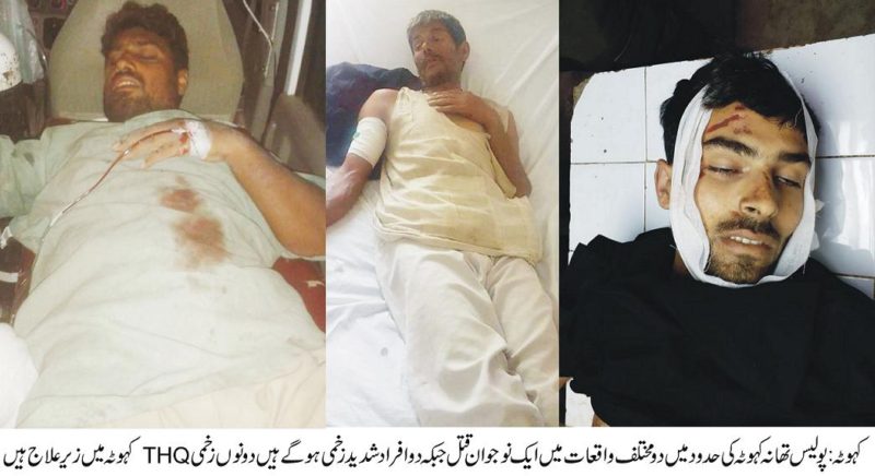 پولیس تھانہ کہوٹہ کی حدود میں دو مختلف واقعات میں 1نوجوان قتل 2افراد زخمی ہو گے