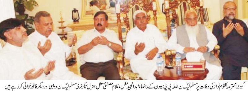 سابق خاتو ن اول محترمہ کلثوم نواز کی وفات پربھورہ حیال کے مغل برادران کی طرف سے تعزیتی اجلاس