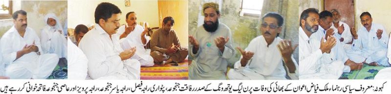 معروف سیاسی شخصیت ملک فیاض اعوان آف بھون کے چھوٹے بھائی ملک ظہیرالدین بابر کی وفات اظہار تعزیت