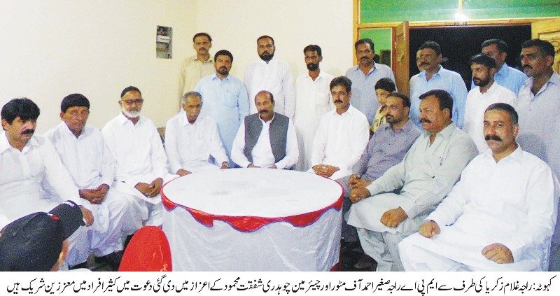 راجہ غلام زکر یا کی طر ف سے ایم پی اے راجہ صغیر احمد اورچیئرمین چوہدری شفقت محمود کے اعزاز میں پر تکلف دعوت