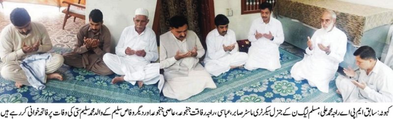 وقاص سلیم ستی کے والدکی وفات پر سابق ایم پی اے راجہ محمد علی کا اظہار تعزیت