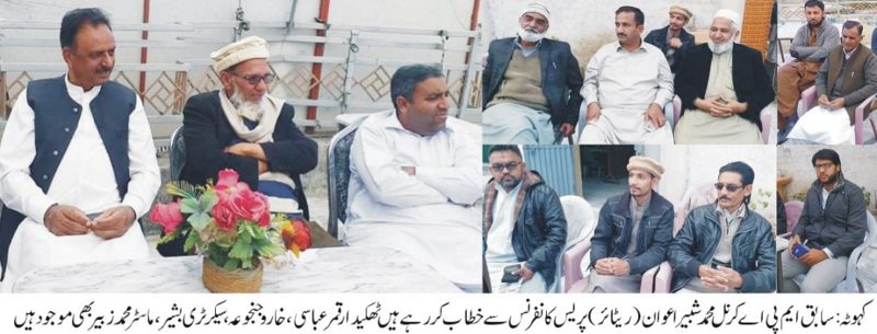 سابق ایم پی اے اور تحریک انصاف کے رہنما ء کرنل محمد شبیر اعوان(ریٹائر)نے کہوٹہ میں ایک پریس کانفرنس سے خطاب کرتے ہوئے ضلع ناظم کا الیکشن لڑنے کا اعلان کر دیا انہوں نے کہا کہ پارٹی کی اعلیٰ کی قیادت نے مجھ پر اپنے اعتماد کا اظہار کرتے ہوئے اگر ٹکٹ دیا تو ضلع ناظم کا الیکشن لڑ کر عوام علاقہ کی بھرپور خدمت کرونگا انھوں نے کہا کہ پی پی پی کے دور میں اپوزیشن میں رہتے ہوئے 90کروڑ سے زاہد کے ترقیاتی کام کیے اللہ پاک کا لاکھ لاکھ شکر ہے نہ ایک روپے کی کریشن کی اور نہ ہی کوئی مجھ پر یہ الزام لگا سکتا ہے میرا فون کبھی بند نہ ہوا اور نہ میرے گھر کے دروازے عوام کے لیے بند نہ ہوئے بطور ایم پی اے بھی نوجوانوں کو روزگار فراہم کرنے میں بھرپور کردار ادا کیا اور اب بھی کئی بچوں کو نوکریاں دلانے میں بھرپور کردار ادا کر رہا ہوں عوام علاقہ سے مکمل رابطہ ہے ہمیشہ عوام کے حقوق کی جنگ لڑونگا 90کروڑ کے منصوبے میں 9کروڑ کی آفر ہوئی مگر میں نے اپنے حق حلال کی کمائی سے گزارہ کیا واٹر سپلائی اور دیگر کئی منصوبے مکمل ہوئے کرنل شبیر اعوان نے مزید کہا کہ پی پی پی سے دلبرداشتہ کر پارٹی چھوڑی مجھے جان بوجھ کر ناکام کیا گیا جسکا مجھے دکھ ہے انشا اللہ اگر مجھے پارٹی نے ضلع ناظم کے لیے نامزد کیا تو کامیاب ہو کر عوام علاقہ کی اس سے بڑھ کر خدمت کرونگا اور عمران خان کے وذن کو کامیاب کرینگے مشکل حالات میں حکومت ملی مگر بہت جلد عوام کو ریلیف ملے گا اس موقع پرٹھکیدار قمر عباسی، راجہ خاور حسین جنجوعہ ، اشرف بیگ ،ماسٹرمحمد زبیر، نارہ کی مشہور سیاسی سماجی شخصیت صوبیدار (ر) محمد صابر ، سیکرٹری محمد بشیر آف ہوتھلہ بھی موجود تھے ۔