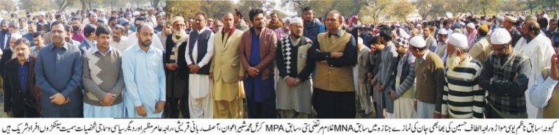 سابق ناظم یوسی مواڑہ راجہ الطاف حسین کی بھابھی اور حافظ عثمان قیوم جنجوعہ کی والدہ محترمہ کی نمازے جنازہ میں سیاسی وسماجی شخصیات سمیت سینکڑوں افراد کی شر کت