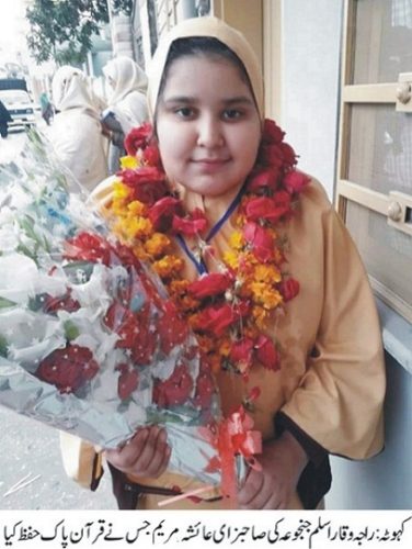 راجہ وقار اسلم جنجوعہ کی صاحبزادی عائشہ مریم نے قرآن پاک کا حفظ مکمل کر لیا