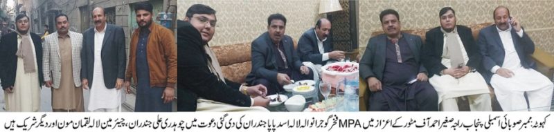 ممبر صوبائی اسمبلی پنجاب راجہ صغیر احمد آف مٹور کے اعزاز میں فخر گوجرانوالہ لالہ اسدپاپا جندران کی طرف سے دعوت