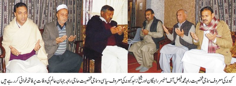 سابق سٹی ناظم حاجی راجہ جہان عالم کی وفات پرکہوٹہ کی معروف سماجی شخصیت راجہ محمد فیصل آف ہنیسر راجگان اور شیخ زاہد کا اظہار تعزیت