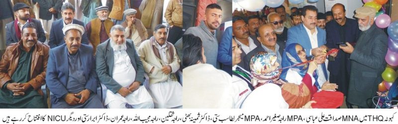 Kahuta; Inauguration ceremony of infant children ward (NICU) was held with MNA Sadaqat Ali Abbassi at THQ hospital, Sadaqat Ali Abbassi also said he is working on for a hospital and university for the region.