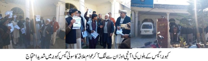 Kahuta; The gas consumers held protest in front of Gas office in Kahuta over excessive and wrong bills being sent, Some gas consumers are being sent bills from 15 to 60 thousand Rps, which they can not afford to pay, The gas authorities are asked to take notice of wrong bills being sent.