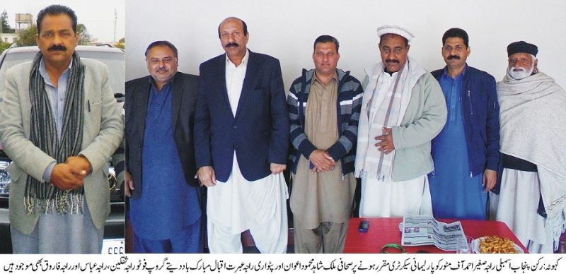 رکن پنجاب اسمبلی راجہ صغیر احمد آف مٹور کو پارلیمانی سیکرٹری مقرر ہونے پر صحافی ملک شاہد محمود اعوان اور پٹواری راجہ عبرت اقبال کی طرف سے مبارکباد