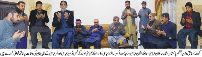 سابق وزیر اعظم پاکستان شاہد خاقان عباسی کا شمس توحید عباسی اور قمر عباسی کے تایاکرنل یونس(ستارہ جرائت) کی وفات پر فاتحہ خوانی