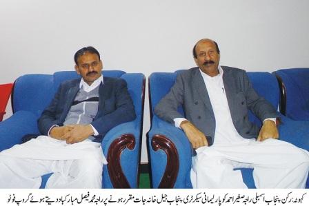 رکن پنجاب اسمبلی راجہ صغیر احمد کو پارلیمانی سیکرٹری پنجاب جیل خانہ جات مقر ر ہونے پر راجہ محمد فیصل کی طرف سے مبارکباد