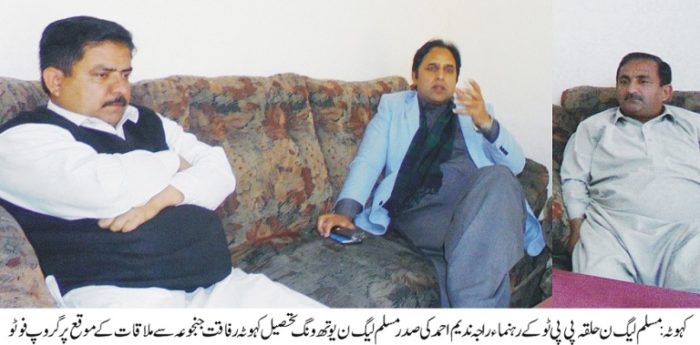 راجہ ندیم احمد کی صدر مسلم لیگ ن یوتھ ونگ تحصیل کہوٹہ رفاقت جنجوعہ سے ملاقات