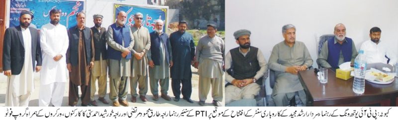 مٹور چوک کہوٹہ میں پی ٹی آئی یوتھ ونگ کے راہنما سردار ارشد مجید کے کاروباری مرکز کا افتتاح ۔پی ٹی آئی حلقہ پی پی سیون کے سنیئر رہنماء راجہ طارق محمود مر تضیٰ اور راجہ خورشید ستی نے دیگر کارکنوں کے ہمراہ کیا ۔کہوٹہ کے شہریوں کے لیے خوشخبری بہت جلد 28کروڑ روپے کی لاگت سے کہوٹہ کے عوام کو صاف ستھرا پانی مہیا کیا جائیگا شہر کے بائی پاسز اور کھنڈرات نما سڑکوں کو پختہ کرنے کے لیے کروڑوں خرچ کیے جائیں گے سلیٹر ہاؤس کو شہر سے باہر منتقل کرنے اور ٹی ایچ کیو ہسپتا ل کہوٹہ کو سٹیٹ آف دی آرٹ بنانے کے لیے بھی منصوبہ اخری مراحل میں ہے بہت جلد وزیر صحت پنجاب یاسمین راشد ،وزیر تعلیم اور دگر وزراء کہوٹہ کا دورہ کر کے منصوبوں کا آغاز کرینگے جبکہ عوام کی شدید مشکلات کو مد نظر رکھتے ہوئے سہالہ پھاٹک پر اوور ہیڈ برج کی تعمیر بھی جلد شروع کی جائے گی ان خیالات کا اظہار پی ٹی آئی حلقہ پی پی سیون کے راہنما سابق ٹاؤن ناظم راجہ طارق محمود مرتضیٰ ، تحصیل صدر راجہ خورشید ستی نے کہوٹہ لاری اڈے کے قریب پی ٹی آئی یوتھ ونگ کے راہنما سردار ارشد مجید کے کاروباری مرکز کا افتتاح کرنے کے بعد صحافیوں سے گفتگو کرتے ہوئے کیا اس موقع پر راجہ ندیم تاج ، شیخ طلحہٰ ،سائیں محمد لطیف ،سردار محمد بابر،سردار ندیم خان،مظہر قریشی اور دیگر کثیر تعداد میں لوگ موجود تھے اس موقع پر راجہ خورشید ستی نے کہا کہ گزشتہ حکومت نے اس علاقہ کو نظر انداز کیا بہت جلد کہوٹہ شہر کو صاف ستھرا اور خوبصورت بنائیں گے سٹریٹ لائٹس صاف پانی اور شہر کی سڑکوں کی تعمیر پر خصوصی توجہ دینگے بہت جلد ایم کے ڈی اے بحال ہو جائیگی اور بلدیاتی نظام بھی بحال ہو گا کوشش کر رہے ہیں کہ کے آئی ٹی میں یونیورسٹی کیمپس قائم کیا جائے۔