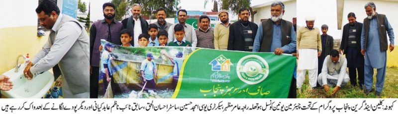 کلین اینڈ گرین پنجاب پروگرام کے تحت حکومت پنجاب کی خصوصی ہدائت پر یوسی ہوتھلہ میں 18سے23مارچ2019کو ہفتہ صفائی افتتاح ہو گیا