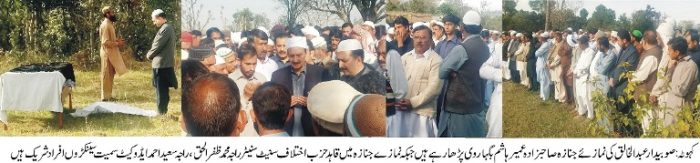 یوسی نارہ کے علاقہ بگھون کی بزرگ سیاسی وسماجی شخصیت صوبیدار عبد الخالق وفات پا گے ان کی نمازئے جنازہ صاحبزادہ عمیر ہاشم بگہاروی نے پڑھا ئی جبکہ نمازے جنازہ میں قاہد حزب اختلاف سنیٹ سنیٹر راجہ محمد ظفر الحق ،صاحبزداہ عزیر ہاشم ایڈوکیٹ ،چیئرمین یوسی نارہ ماسٹر محمد یونس ،صدر مسلم لیگ ن کہوٹہ سٹی ڈاکٹر محمد عارف قریشی ،جنرل سیکرٹری راجہ سعید احمد ایڈوکیٹ ،قاری عبد الرحیم ،کونسلر محمود چوہان ،لیگی کارکن آفتاب کیانی ،راجہ ذوالفقار علی ستی ،صدر پوٹھوار ویلفیئر ٹرسٹ حاجی ملک منیر اعوان ،صدر یوتھ ونگ ن لیگ تحصیل کہوٹہ رفاقت جنجوعہ ، جنرل سیکرٹری حامد لطیف ستی ،سیکرٹری اطلاعات عاصی جنجوعہ سمیت سینکڑوں افراد نے شرکت کی ۔