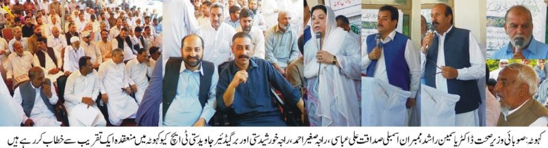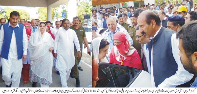 Kahuta; Dr Yasmin Rashid Provincial Minister of Punjab for Primary and Secondary Healthcare visited tehsil headquarter hospital in Kahuta on the invitation of local MNA Sadaqat Ali Abbassi and MPA Raja Sagheer Ahmed. Dr Yasmin Rashid announced that she will upgrade the thq hospital from 60 bed o 100 bed and to also provide medicine and equipment for the hospital.