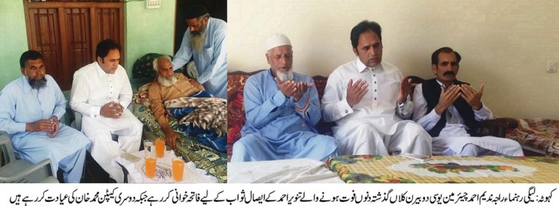 لیگی رہنماء راجہ ندیم احمد چیئرمین یوسی دوبیر ن کلاں کا اپنی یوسی کا دورہ رواں ہفتے میں ہونے والی فوتگیوں کے والے گھر وں میں حاضری