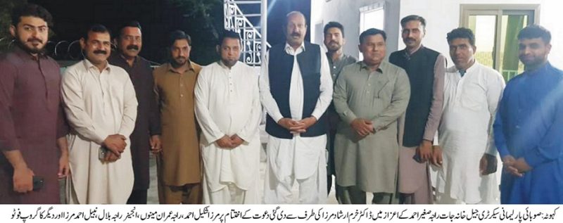 صوبائی پارلیمانی سیکرٹری جیل خانہ جات راجہ صغیر احمد کے اعزاز میں ڈاکٹر خرم ارشاد مرزا کی طرف سے پر تکلف دعوت