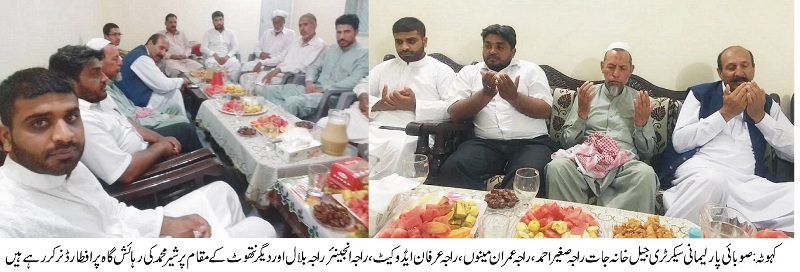 صوبائی پارلیمانی سیکرٹری جیل خانہ جات راجہ صغیر احمدکے اعزاز میں راجہ شیر احمد کی طرف سے افطار ڈن