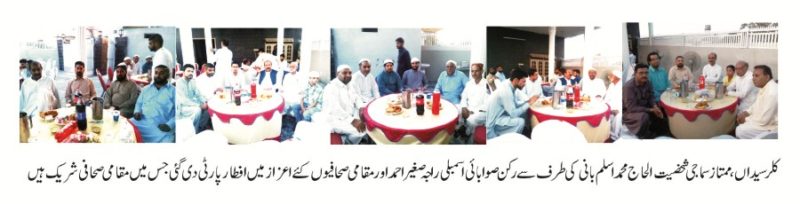 الحاج محمد اسلم بانی کی طرف سے راجہ صغیر احمد پارلیمانی سیکرٹری جیل خانہ جات،تحصیل کلرسیداں کے صحافیوں کے اعزاز میں ایک افطار ڈنر کا اہتمام کیا گیا