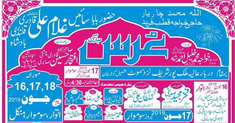 Sir sooba shah, Kallar Syedan; Three day urs Mubarak of Baba Ghulam Ali Qalandri comes to close in Malik Pur, Samot