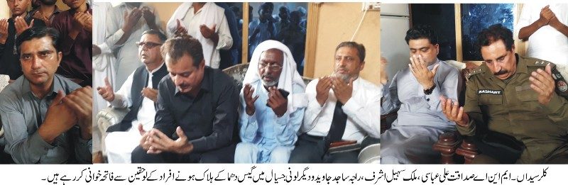 Kallar Syedan; MNA Sadaqat Ali Abbassi along with Hafiz Sohail Ashraf arrive in village Looni Jasiyal and visited the family which lost eight members of family in gas explosion and the family was promised for a inquiry in to the incident, while Malik Sohail Ashraf announced two Lakh Rps help for the family.