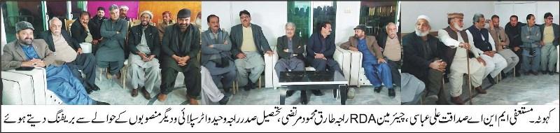 کہوٹہ کے عوام سے کیے گے وعدے پورے کر دیے42کروڑ روپے کی لاگت سے واٹر سپلائی اور سیوریج سسٹم کا کام شروع ہے گریڈ اسٹیشن، دھپری، ابلوہا، فاروق کالونی، ادوالہ سمیت پوری ایم سی کی حدود میں گھر گھر پانی پہنچا ئیں گے کوئی ایسا گھر نہیں رہے گا جو صاف پانی سے محروم رہے مخالفین نے میرے خلاف جھوٹے اور من گھڑت الزامات بھی لگائے لیکن میں نے انکا جواب اپنے کاموں سے دیا جنہوں نے تیس سال حکومت کی وفاقی وزیر، وزیر اعظم اور چئیر مین مسلم لیگ ن بھی رہے انھوں نے نہ واٹر سپلائی دی نہ سڑکیں نہ ہی کالجز دیے چند خانہ بدوش جو ہوتے ہمارے ساتھ ہیں مگر انکو رات کو زرداری اور پرویز اشرف یاد آتے ہیں انھوں نے بھی میڈیا پر میرے خلاف زہر اگلا مگر آج میرے کام بولتے ہیں اربوں روپے کی ٹورازم ہائی وے، ایک ارب 12کروڑ کی لاگت سے کہوٹہ پنڈی،کہوٹہ جیوڑہ روڈ کی تعمیر شروع ہے بوائز اور گرلز ہائی سکول کو کالج کا درجہ دلوایا جبکہ بے شمار سکولوں کو اپ گریڈ کروایا جسکی گزشتہ تیس سالوں میں مثال نہیں ملتی، ٹی ایچ کیو ہسپتال کی اپ گریڈیشن،سپورٹ اسٹیڈئم کا قیام جبکہ اس کے علاوہ حلقہ بھر میں اربوں روپے کے سینکروں منصوبے جاری ہیں مری میں یونیورسٹی کا قیام جبکہ چھ کیمپسز تعمیر کرنے تھے مگر ہماری حکومت ختم ہوئی تو شاہد خاقان عباسی نے انکو رکوایا مگر آمدہ جنرل الیکشن سے قبل اس حوالے سے بھی عوام کو خوشخبری دیں گے ان خیالات کا اظہار مستعفی ایم این اے صداقت علی عباسی، چئیر مین RDAراجہ طارق محمود مرتضیٰ تحصیل صدر راجہ وحید احمد خان نے دھپری میں واٹر سپلائی منصوبہ کے حوالے سے بریفنگ دیتے ہوئے کیا اس موقع پر راجہ طارق محمود مرتضیٰ نے کہا کہ2006میں واٹر سپلائی اور سیوریج سسٹم سکیم شروع کی جسکو حکومت تبدیل ہوئی تو ختم کر دیا گیا تھا یہ میرا خواب تھا کہ اپنے حلقے کو پانی جیسی سہولت مہیا کروں جو تعبیر ہوا جس کے لیے صداقت علی عباسی نے کاوش کی انشااللہ عوام کے مسائل حل کریں گے اس وقع پر سنئیر نائب صدر تحصیل کہوٹہ مختار احمد کلیامی، جنرل سیکرٹری سردار ایم رضا، سٹی صدر راجہ الطاف حسین،جنرل سیکرٹری راجہ منان مسعود،زبیر ستی، نائب صدر راجہ تنویر،سردار مظہر، راجہ واحد، نوجوان راہنماراجہ رئیس جنجوعہ و دیگر کارکنان ورکرز ن کثیر تعداد میں شرکت کی صداقت علی عباسی نے اس موقع پر کہا کہ ہم نے35سال والوں کے مقابلے ریکارڈ ترقیاتی کام کروائے عوام ہمارے کاموں کو مد نظر رکھتے ہوئے بھرپور وؤٹ دیں اور پی ٹی آئی کو مزید مظبوط کریں بعدازاں صداقت علی عباسی، راجہ طارق محمو دمرتضیٰ و دیگر نے ٹی ایچ کیو ہسپتال کا دورہ کیا اور زیر تعمیر بلڈنگ کا جائزہ لیا