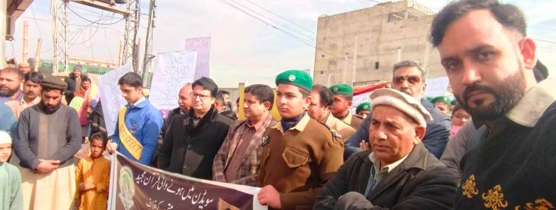 آل پاکستان پرائیویٹ سکولز منجمنٹ ایسویشن تحصیل کلرسیداں کے زیراہتمام سویڈن میں قرآن مجید کی بے حرمتی کے خلاف احتجاجی مظاہرہ