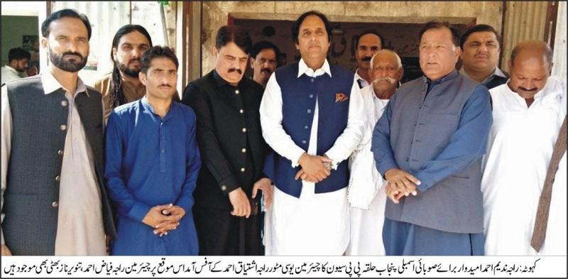 Raja Nadeem Ahmed, the candidate for Provincial Assembly, Punjab, Constituency PP Seven, arrived recently and visited the People’s Secretariat