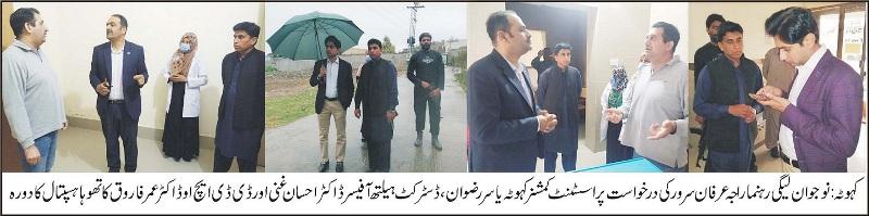 On the request of youth league leader Raja Irfan Sarwar, Assistant Commissioner Kahuta Yasir Rizwan, District Health Officer Dr. Ehsan Ghani and DHO Dr. Umar Farooq visited Thoa Hospital