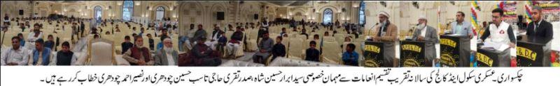 عسکری پبلک سکول اینڈکالج چکسواری کی سالانہ تقریب تقسیم انعامات
