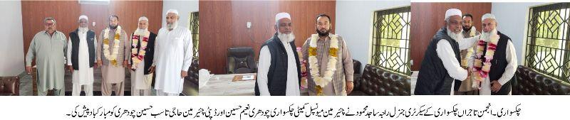انجمن تاجراں چکسواری کے صدر محمد شفیق خواجہ،چودھری شبیر نگیال صدر انجمن تاجراں حمید آباد،سیکرٹری جنرل انجمن تاجراں چکسواری راجہ ساجد محمود نے پریس کانفرنس