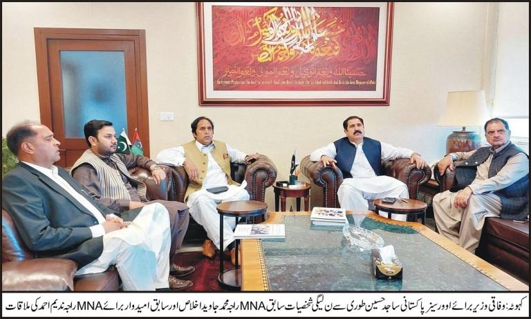PML-N leaders Raja Mohammad Javed Ikhlas and Raja Nadeem Ahmed met with Federal Minister for Overseas Pakistanis Sajid Hussain Turi