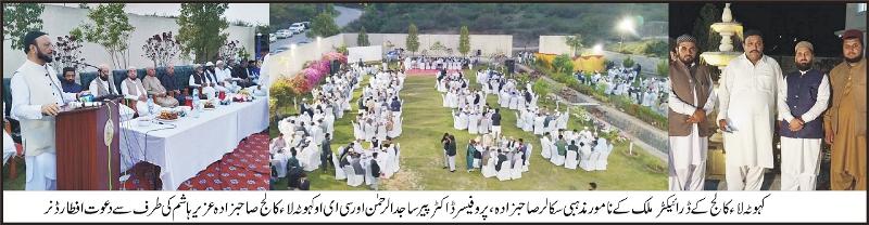 کہوٹہ لاء کالج کے ڈرائیکٹرملک کے نامور مذہبی سکالر صاحبزادہ، پروفیسر ڈاکٹر پیر ساجد الرحمن اور سی ای اوکہوٹہ لاء کالج صاحبزادہ عزیر ہاشم کی طرف سے دعوت افطارڈنر