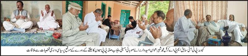 پی ٹی آئی سابق ایم پی اے کرنل محمد شبیر اعوان امیدوار برائے صوبائی اسمبلی پنجاب حلقہ پی پی سیون کا حلقے کے دورہ،
