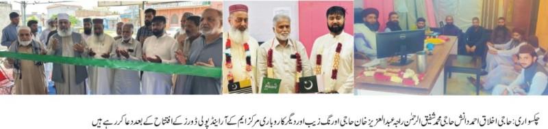 چکسواری(نمائندہ پوٹھوار ڈاٹ کوم، ،اللہ دتہ بسمل ,13،مئی,2023)— کاروباری مرکز ایم کے آرسول انجینئراینڈآرکیٹیکٹ اورپولی ڈورز کی افتتاحی تقریب بن بڑوٹیاں چکسواری میں واقع برلب میرپور کوٹلی شاہراہ منعقدہوئی افتتاحی تقریب کے مہمان خصوصی الفلاح سوسائٹی ایسرکے سیکرٹری جنرل حاجی اخلاق احمددانش سابق اے ای او (ر) صدرمعلم اوردیگر شخصیات نے اپنے دست مبارک سے فیتہ کاٹ کرافتتاح کیا افتتاحی تقریب میں مرکزی انجمن تاجراں چکسواری کے سینئرنائب صدر راجہ عبدالعزیز خان نائب صدر قاضی قدیر احمد سیکرٹری جنرل حاجی چودھری اورنگ زیب راجہ شاہدعزیز خواجہ محمداحتشام یوتھ کونسلر تحریک لبیک پاکستان آزادکشمیر کے راہنماوں مفتی کبیر احمدسعیدی حاجی چودھری شفیق الرحمن سابق امیدواراسمبلی حلقہ نمبرتین میرپور ظہیرعباس قار ی عبدالحلیم غازی راحیل احمدانجینئرراجہ عدیل احمدطار ق صدف کے علاوہ سیاسی سماجی وکاروبار ی شخصیات سمیت دیگر نے شرکت کی شرکاء تقریب نے کاورباری مرکز کے اونر انجینئرمحمدخلیق الرحمن کومبارک بادپیش کی اورکاروبارکی کامیابی کے لئے دعاکرائی قاری محمدنورگل سیالوی اورمفتی کبیر احمدسعیدی نے دعاکرائی۔ مہمانوں کی تواضع بھی کی گئی۔
