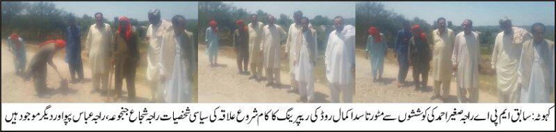 With the efforts of former MPA Raja Sagheer Ahmed, the work of reparing of Matur to sada Kamal Road has started