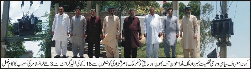 With the efforts of Nambardar Malik Fida Awan of Bhoon and former councilor Malik Nasir Shahzad, 3 transformers were upgraded at a cost of Rs 18 lakh