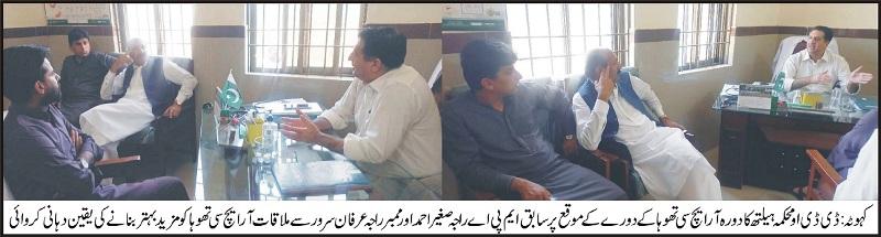 ڈی ڈی او محکمہ ہیلتھ ڈاکٹر عمر فاروق کاآر ایچ سی تھوہا کے دورے کے موقع پرسابق ایم پی اے راجہ صغیر احمد اور ممبر راجہ عرفان سرور سے ملاقات