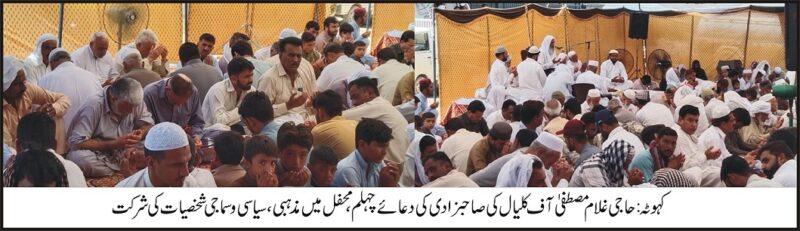 - Other attendees included Malik Madthar Masoomi, Malik Sahil Murtaza, Malik Tahir Nasir, Malik Zahid, Chacha Mahmood Fakhre, Malik Sarfaraz, Malik Walid, Malik Naseem Ashraf, Malik Naseer Shahzad Counselor, Malik Tahzeeb, Malik Zubair, Malik Qasim Sajjad, and Sufi Ihtesham-ul-Haq Masoomi.