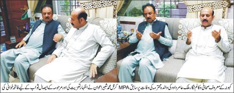 The mother of Kahuta’s well-known journalist and columnist Malik Amir Dawood passed away