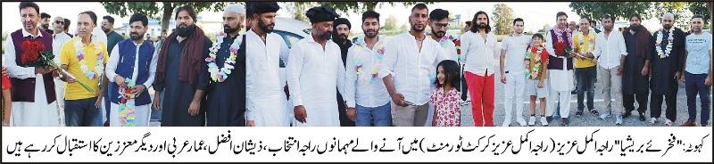 “فخرئے بریشیا”راجہ اکمل عزیز کے زیر اہتمام (راجہ اکمل عزیز کرکٹ ٹورمنٹ)اختتام پزید ہو گیا،ٹورنامنٹ میں ٹوٹل 32ٹیموں نے حصہ لیا،فائنل پادوآالیون نے جیت لیا جبکہ پارما الیون رنر اپ رہی،جیتنے والی ٹیم کو4لاکھ76 ہزار655روپے اور ٹرافی جبکہ رنر اپ ٹیم کو 2لاکھ38 ہزار327روپے اور ٹرافی انعام دیا گیا،میچ کے آرگنائزرنوجوان سیاسی و سماجی شخصیت “فخرئے بریشیا”راجہ اکمل عزیزکو شاندار کامیاب ٹورنا منٹ کرانے پر مبارکباد پیش کی گئی،تفصیل کے مطابق نوجوان سیاسی و سماجی شخصیت “فخرئے بریشیا”راجہ اکمل عزیز کے زیر اہتمام (راجہ اکمل عزیز کرکٹ ٹورمنٹ) بریشیا (مونتی کیاری گراؤئنڈ) میں منعقد کیا گیا جس میں انٹری فیس 100یورو(پاکستانی31ہزار777روپے) جبکہ پہلا انعام 1500یورو+ٹرافی(پاکستانی4لاکھ76 ہزار655روپے) اور دوسرا انعام 750یورو+ٹرافی(پاکستانی2لاکھ38 ہزار327روپے)تھا ٹورنامنٹ میں ٹوٹل32ٹیموں نے حصہ لیا فائنل میچ چوہدری شفیق سیٹھی کی ٹیم پادوآالیون اور بلا پارما کی ٹیم پارما الیون میں ہوا جو پادوآالیون نے جیت لیافائنل میچ میں بڑھی تعداد میں تماشائیوں نے شرکت کی،جبکہ اس موقع پر میچ دیکھنے کے لیے انگلینڈ، سویزئر لینڈسے بھی مہمان آئے تھے تمام معزز مہمانوں اور شائقین کر کٹ نے شاندار کامیاب ٹورنا منٹ کرانے پر”فخرئے بریشیا”راجہ اکمل عزیزکا مبارکباد پیش کی ہے راجہ اکمل عزیزنے بھی تمام معزز مہمانوں اور شائقین کر کٹ کا شکر یہ ادا کیا۔