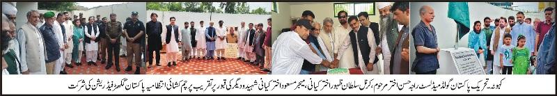 76ویں جشن آزادی پاکستان کے موقع پر پاکستان کا ایک ایسا واحد گھرانہ کہ جسے یہ اعزاز حاصل ھے اس نے حصول پاکستان کی خاطر اپنی بے پناہ قربانیوں کے عوض دو عدد تحریک پاکستان گولڈ میڈل حاصل کر رکھے ھیں۔ یہ پھروالہ (کہوٹہ) خاندان کی شخصیات باپ اور بیٹے راجہ حسن اختر (مرحوم) اور کرنل سلطان ظہور اختر کیانی کہ جنکو حصول پاکستان کی تحریک میں کارہاے نمایاں سرانجام دینے پہ تحریک پاکستان گولڈ میڈل سے نوازا گیا کو خراج تحسین پیش کرنے کیلے ایک تقریب کا انعقاد ھوا۔ کرنل سلطان ظہور اختر (مرحوم) اسکے علاوہ دیگر اعزازات کے حامل بھی تھے کہ جنکو تمغہ خدمت پاکستان، تمغہ دفاع کشمیر سے نوازا گیا۔ آپکو قائد اعظم محمد علی جناح کے ADC رھنے کا بھی شرف حاصل ھے۔آپ علی گڑھ مسلم یونیورسٹی سے گریجیوٹ بھی تھے اور آپنے اپنی زندگی میں بہت سی تصانیف / کالم لکھ رکھے ھیں۔اسی احاطہ میں انکے بھائی میجر مسعود اختر کیانی شہید(ستارہ جرات) اور علمی ادبی شخصیت محمود اختر کیانی (مرحوم) بھی مدفون ھیں کہ جنہوں نے دفاع پاکستان نظریہ پاکستان کیلے اپنی خدمات سر انجام دیں۔وطن کی محبت سے سرشار اس پھروالہ خاندان کی خدمات کو خراج تحسین پیش کرنے کیلے آج 14 اگست کو کہوٹہ کے مقام پہ ایک تقریب بسلسلہ پرچم کشائی کا انعقاد کیا گیا۔ اسسٹنٹ کمشنر کہوٹہ مس عائشہ بدر، چیف آفیسر کہوٹہ کامران خان پولیس تھانہ کہوٹہ، ٹریفک پولیس و دیگر انتظامیہ پاکستان گکھڑ فیڈریشن کے عہدیداران، سیاسی و سماجی شخصیات نے اس پروقار تقریب میں شرکت کی اور اپنے خیالات کا اظہار کر کے ان تاریخی شخصیات کی پاکستان کیلے خدمات کو خراج تحسین پیش کیا۔ سول ڈیفنس کہوٹہ کے اہلکاران کی جانب سے پاکستانی پرچم کو سلامی پیش کی گی۔ تقریب میں پاکستان گکھڑ فیڈریشن کے مرکزی عہدیداران چیئرمین کرنل راجہ محمد طارق کمال، چیف آرگنائزر کیپٹن فائز اختر کیانی، واہیس چیرمین محمد منیر راجہ، سیکرٹری جنرل راجہ تسلیم احمد کیانی اور سنٹرل کوآرڈینیٹر محمد عمر افضل کیانی کے علاوہ سیاسی سماجی مذہبی شخصیات ڈاکٹر محمد عارف قریشی، راجہ طارق عظیم امیدوار برائے MNA، محمد شبیر کیانی پرنسپل کہوٹہ کالج، ملک منیر اعوان، پروفیسر صاحبزادہ عبدالصبور سیفی، ملک عبدالراوف، چئیرمین ہویم رائٹس کمیٹی کہوٹہ خاور ریاض قادری ایڈووکیٹ، جنرل سیکرٹری ارسلان اصغر کیانی ایڈووکیٹ، آصف کیانی، ساجد محمود کیانی (ایڈوکیٹ) و دیگر معززین علاقہ نے شرکت کی۔اسسٹنٹ کمشنر کہوٹہ، سی او کہوٹہ، پاکستان گکھڑ فیڈریشن کے عہدیداران و دیگر مقررین نے دوران خطاب راجہ مبین اختر اور کیپٹن (ر) فائز اختر کیانی کی فیملی کی نامور شخصیات راجہ حسن اختر مرحوم، کرنل (ر) سلطان ظہور اختر، محمود اختر کیانی (مرحوم) اور میجر مسعود اختر کیانی شہید (ستارہ جرات) کی خدمات پر انکو زبردست خراج عقیدت پیش کیا۔ اس موقع پر آزادی کیک کاٹا گیا اور قومی پرچم لہرایا گیا۔ پروگرام کے اختتام پر ملک پاکستان کی سلامتی و بقاء مرحومین کے درجات بلندی کے لیے خصوصی دعا بھی کی گئی۔
