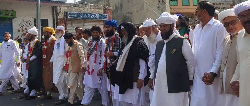چکسواری: (پوٹھوار ڈاٹ کام،نمائندہ خصوصی اللہ دتہ بسمل,02,اکتوبر,2023) — دنیابھر کی طر ح یونین کونسل فیض پورشریف میں بھی جشن عیدمیلادالنبیﷺ انتہائی شا ن وشوکت مذہبی جوش وجذبہ اورعقیدت واحترام منایاگیا پیرطریقت رہبرشریعت حضرت مولانا پیر محمدحبیب الرحمن محبوبی سجادہ نشین آستانہ عالیہ فیض پورشریف کی قیادت میں عظیم الشان جلوس نکالاگیاجس میں عوام اہلسنت نے بہت بڑی تعداد میں شرکت کی فیض پورشریف بازار کورنگ برنگی جھنڈیوں جھنڈوں بڑے بڑے بینرز سے سجایاگیا بازار کے مختلف مقامات پرخوب صورت سٹیج بنائے گئے صوفی محمدیعقوب شہیدمارکیٹ الحاج عبدالرشید مارکیٹ بٹالوی مارکیٹ میں خوب صورت سٹیج بنائے گئے جہاں پرجلوس جلسہ عام کی شکل اختیارکرتارہااورجلسہ عام کے اجتماع سے حضرت مولانا پیر محمدحبیب الرحمن محبوبی سجادہ نشین آستانہ عالیہ فیض پورشریف نے ایمان افروز خطابات فرمائے جن میں انہوں نے سیرت النبی ﷺ کے مختلف پہلوؤں پرسیر حاصل روشنی ڈالی شرکاجلوس نے فیض پورشریف بازار کے دکانداروں کوبازار کی ز بردست سجاوٹ کرنے میلاد کے جلوس کے لئے شاندار انتظامات کرنے پرمبار کبادپیش کی جلوس کاآغازبعداز ادائیگی نماز جمعہ کے بعد دربارعالیہ فیض پورشریف سے ہوا جلوس کے شرکاء پورے بازار کاچکر لگانے کے بعدانتہائی منظم انداز میں حضرت مولانا پیر محمدحبیب الرحمن محبوبی کی قابل فخر قیادت میں واپس دربارشریف کی جامع مسجدانوار حرم میں پہنچ کرایک بڑے اجتماع میں تبدیل ہوگیااجتماع سے حضرت مولانا پیر محمدحبیب الرحمن محبوبی اورمولانا آصف جمیل مولانا مظفراقبال مولانا مظہراقبال نقشبندی پروفیسر مولانا محمدسعیداحمدغزنوی سمیت دیگرعلماکرام نے خطاب کیامقررین نے سندھ حیدرآبادمیں خلیفہ ثانی حضرت سیدنا فاروق اعظم رضی اللہ تعالی عنہ کی شان میں گستاخی کی پرزور اورشدیدالفاظ میں مذمت کی اورحکومت پاکستان سے پرزور مطالبہ کیاکہ امیرالمومنین حضرت عمرفاروق رضی اللہ عنہ کی شان میں گستاخی کرنے والے کوقرار سزادی جائے تاکہ آئندہ کسی کوایسے قبیح فعل کی جسارت نہ ہوسکے اغیار نبی کریم ﷺ صحابہ کرام اہل بیت اطہار کی شان میں گستاخی کی جسارت موجودہ حکمرانوں کی کمزورپالیسیوں کی وجہ سے کرتے ہیں پاکستان اسلام کی نام پرقائم ہوا اور ایک اسلامی ملک میں اس قسم کی گھناؤنی سازشیں بہت بڑاالمیہ ہے حکومت پاکستان کواس کافوری طورپرنوٹس لیناچاہئے تاکہ آئندہ کوئی ایسی مذموم حرکت کرکے امت مسلمہ کے جذبات مجروح نہ کرسکے اسلام اورمسلمانوں کے خلاف سازشیں کرنے والوں کوہم یہ بتادیناچاہتے ہیں کہ ہم میلاد ی ہیں فسادی نہیں ہم نبی کریم ﷺ صحابہ کرام اہل بیت اطہا ر اورمقدس ہستیوں کی شان میں گستاخی ہرگز ہرگز بردداشت نہیں کرسکتے ہم حکومت پاکستان کوخبردار کرتے ہیں کہ پاکستان کے اندر ایسی مذموم جسارت کرنے والے کیاپیغام دیناچاہتے ہیں حالات کی اس سنگینی کاحکومت کو ادراک ہوناچاہیے اوراس کاسخت ترین نوٹس لیاجائے اورموثر اور ٹھوس کارروائی کی جائے پیش ازیں چکسواری میں بھی جشن عیدمیلادالنبی ﷺ کابہت بڑاجلوس نکالاگیاجلوس کی قیادت حضرت مولانا پیر محمدحبیب الرحمن محبوبی مرکزی میلاد کمیٹی چکسواری کے عہدیداروں مرکزی انجمن تاجراں چکسواری انجمن تاجراں چکسواری کے عہدیداروں سیاسی سماجی راہنماؤں سمیت زندگی کے تمام شعبوں سے تعلق رکھنے والی ممتاز شخصیات صحافیوں اورقائدین اہلسنت وجماعت کے راہنماوں نے کی سیدکلیم عباس شاہ تحصیلدار اسلام گڑھ ہمراہ تحصیل انتظامیہ عمیررشید ایس ایچ او تھانہ پولیس چکسواری نفری کے ہمراہ سیکورٹی کے بہترین انتظامات کیے جلوس کے ساتھ ساتھ رہے اوربھرپور نگرانی کرتے رہے شرکاء جلوس نے بہترین نظم وضبط کامظاہرہ کیا چکسواری میں میلاد کے جلوس اورجلسہ عام سے مرکزی میلادکمیٹی چکسواری کے صدر حاجی چودھری تاسب حسین چودھری منیرحسین سیٹھی مولانا مفتی حامدکمال نقشبندی مولانا مفتی محمدعاشق شوق مولانا محمدآصف جمیل پروفیسر مولانا عبدالمتین یاسر مولانا محمداحمدرضاچ