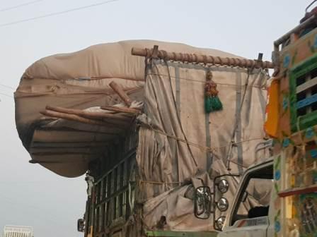 The extremely dangerous overloaded truck created long queues of vehicles on Rawat Kallar Syedan Road